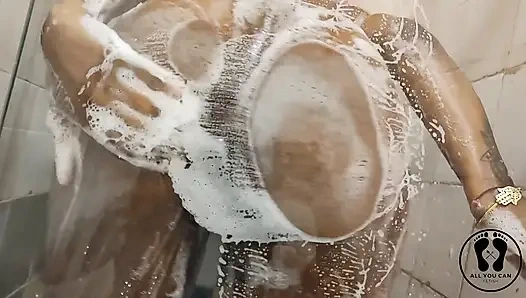 Hot Ebony Full Soap Shower Massage Her Big Ass Booty Tits